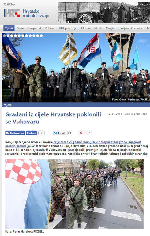 Јуче прије подне, са оцем којем се навикао на читање усташких и усташоидних памфлета, с муком одгледах обиљежавање 23. годишњице пада Вуковара.