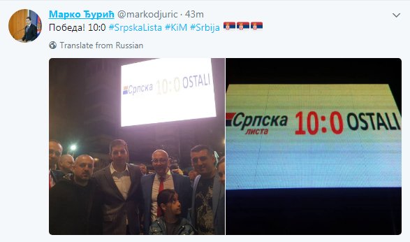 Косовска Митровица, 22. 10. 2017. (С*ање ствари) – Српска листа победила је на локалним изборима у свим општинама са српском већином на Косову и Метохији. Пошто је победа убедљива а изборе је организовала Република Србија, директор Канцеларије за КиМ Марко… Read More ›