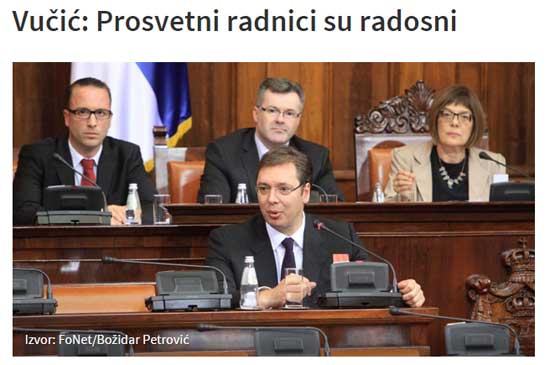 Једнократна помоћ од 7.000 динара и повећање плате од четири одсто за просветне раднике је значајно, изјавио је данас премијер Александар Вучић који је додао да мисли да су просветни радници радосни због тога.