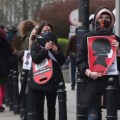 На протесту против одлуке Врховног суда којом се укида право на побачај на савезној разини једна жена рекла да је обавезна вакцинација „боља за друштво“, а да у случају абортуса суштина није у животу бебе