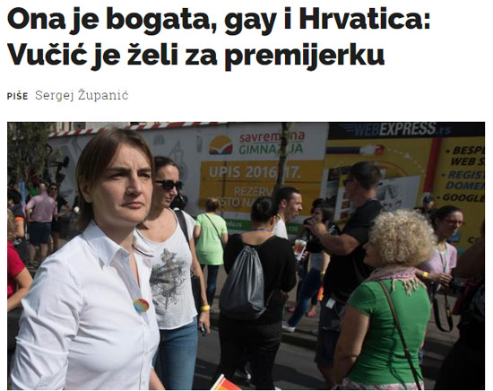 Данас – у четвртак 15. јуна – председник Србије Александар Вучић је за премијера Србије именовао Ану Брнабић, декларисану хомосексуалку. Као дугогодишњи противник ЛГБТ лобија могу се осећати разочарано и незадовољно.