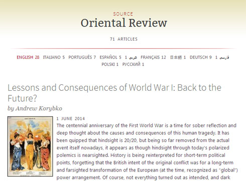 Андреј Корибко: Повратак у будућност – наравоученија Првог светског рата