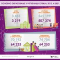 У школској 2021/22. години било 507.374 ђака, знатно мање него 2012/13, када их је било 565.199. У школској 2012/13. било 3.455 школа, а девет година касније 3.219, наводи се у извештају РЗС за Србију (без података за КиМ)