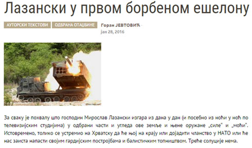 За сваку је похвалу што господин Мирослав Лазански изгара из дана у дан (и посебно из ноћи у ноћ по телевизијским студијима) у одбрани части и угледа ове земље и њене оружане „силе“ и „моћи“. Истовремено, толико се устремио на… Read More ›