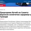 Председништво Србије огласило се поводом скупа у Гранади саопштењем наводећи да су „лидери 47 земаља и представници Европске уније разговарали о безбедности, енергетици и другим питањима“