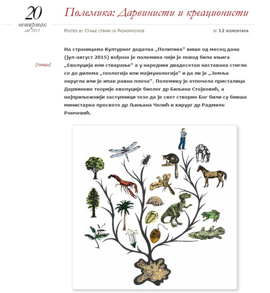 Поводом полемике која се у Политици водила између дарвиниста и верника, пренето и на Стању ствари („Полемика: Дарвинисти и креационисти“)
