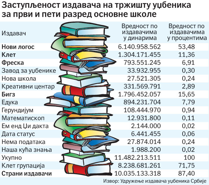 Спор је настао због поклоњеног пратећег школског материјала који доминантна групација од три издавача даје уз купљене комплете уџбеника.-„Клет”: Нисмо страни, него домаћи издавач