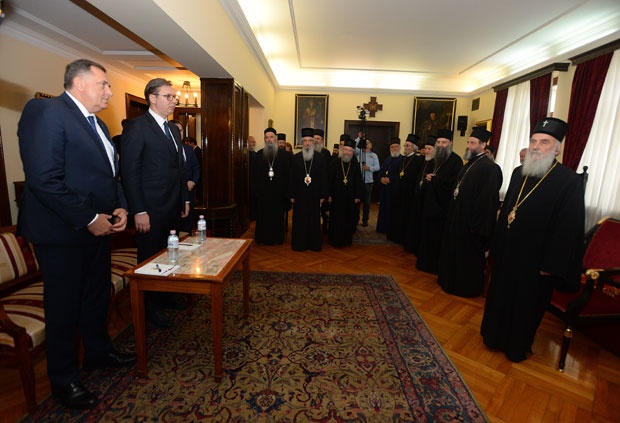 Вечерње новости: У Патријаршији – загрљај Вучића и Теодосија, Игњатије против „неверних Тома“