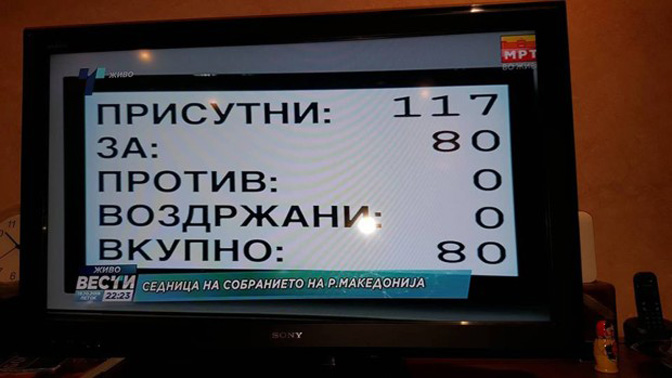 Укупно 80 посланика подржало уставне промене, после којих ће Македонија променити име у Република Северна Македонија, док ће Грчка заузврат одблокирати евроатлантске интеграције