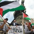 Учесници скупа носили су палестинске заставе и узвикивали „Слободна Палестина”, „Спасите Јерусалим”, „Спасите Газу”