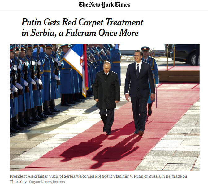 Српски председник Александар Вучић је све ауторитарнији лидер који по много чему подсећа на Путина, пише Њујорк тајмс