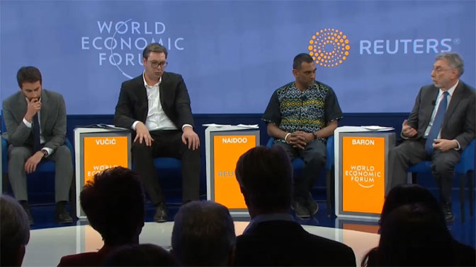 Председник Србије обећао да ће за годину, две „када поново буде у Давосу“ моћи да каже да је поносан на слободу медија у Србији