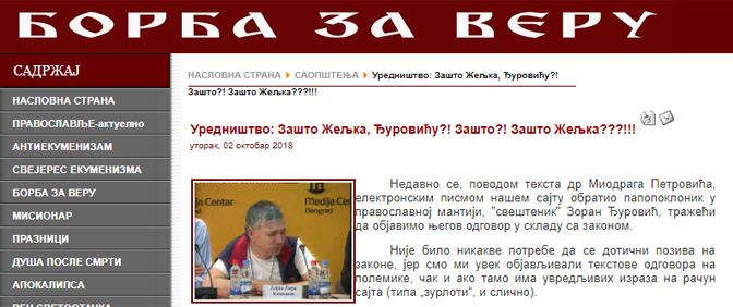 Борба за веру: Зашто не објављујемо одговор папопоклоника у православној мантији З. Ђуровића