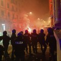Гомила незадовољних људи скандирала је „Слобода“ бацајући флаше и димне бомбе на полицијска возила
