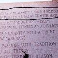 „Одржавај човечанство испод 500.000.000 у сталној равнотежи с природом“, каже се у првој од десет заповести исписаних на десет језика на споменику из 1980. за који ни до данас није откривено ко га је поставио