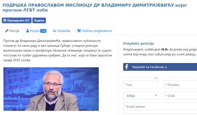 Покренута онлајн петиција подршке др Владимиру Димитријевићу кога прогони ЛГБТ лоби