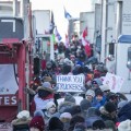 Демонстранти су првобитно желели да укину обавезну вакцинацију против корона вируса да би прешли границу за возаче камиона, али се блокада претворила у демонстрације против Трудоа и владе