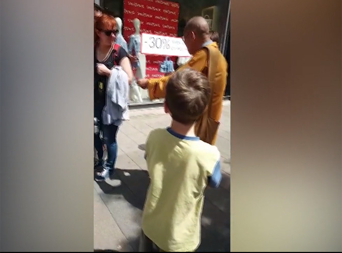 Он вади из џепа свог етно или религијског одела неке пластичне бројанице и нуди ми. Рекло би се да очекује новчано уздарје