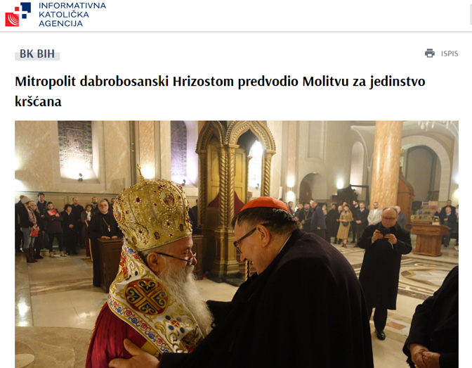 IKA: Mitropolit dabrobosanski Hrizostom predvodio Molitvu za jedinstvo kršćana