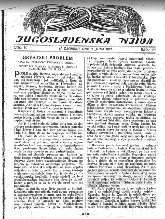 Никола Милованчев: Хрватски проблем – чланак једног умног и честитог Хрвата из 1921.