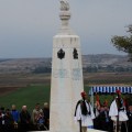 Крај цркве, у центру је петострани споменик сила победница, где стоји име државе и велики крст. Једино на страни Србије стоји велика црвена петокрака, као да су сви српски ратници били некрштени безбожници