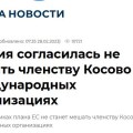 РИА Новости: Србија пристала да се не меша у чланство самопроглашеног Косова у међународним организацијама