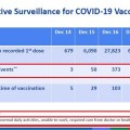 На 6. страни извјештаја дат је преглед броја вакцинисаних Фајзеровом вакцином и броја случајева утицаја на здравље послије прве вакцине