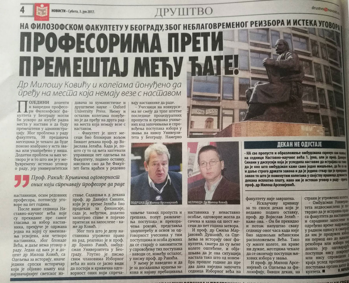 Филозофски факултет: Милошу Ковићу и колегама понуђена места која немају везе са наставом