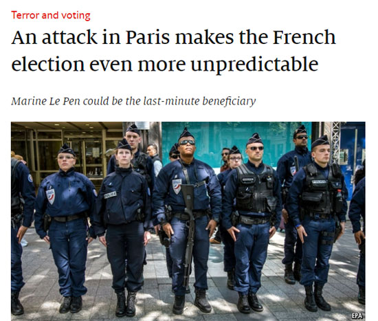 Терор и гласање: Марин ле Пен би могла да се окористи у задњи час (Економист, Лондон, 21. 4. 2017)