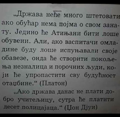 Јад и беда у које је запало образовање народа Николе Тесле огледају се чак и у летимичном прегледу ставова мудрих људи о сврси којој образовање треба да служи