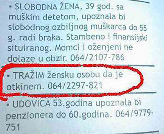 Супер мали огласи Приватни извршитељ племенит, осећајан, благе нарави, тражи животну сапутницу. Шифра: СНС Минхаузен